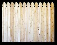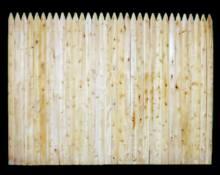 The Original Security Fence. Once used for defensive purposes by the early settlers, the wood stockade fence had sharpened logs placed side by side around the perimeter of camps or forts. Today, our Eastern White Cedar Stockade Fencing still provides maximum security at a minimum cost. Stockade fences are extremely difficult to climb from the outside and provide an attractive wood fence solution to maintaining privacy. Available in both straight top cedar stockade fencing, and scalloped cedar stockade fencing. Standard back rails are SPF or optional cedar back rails.